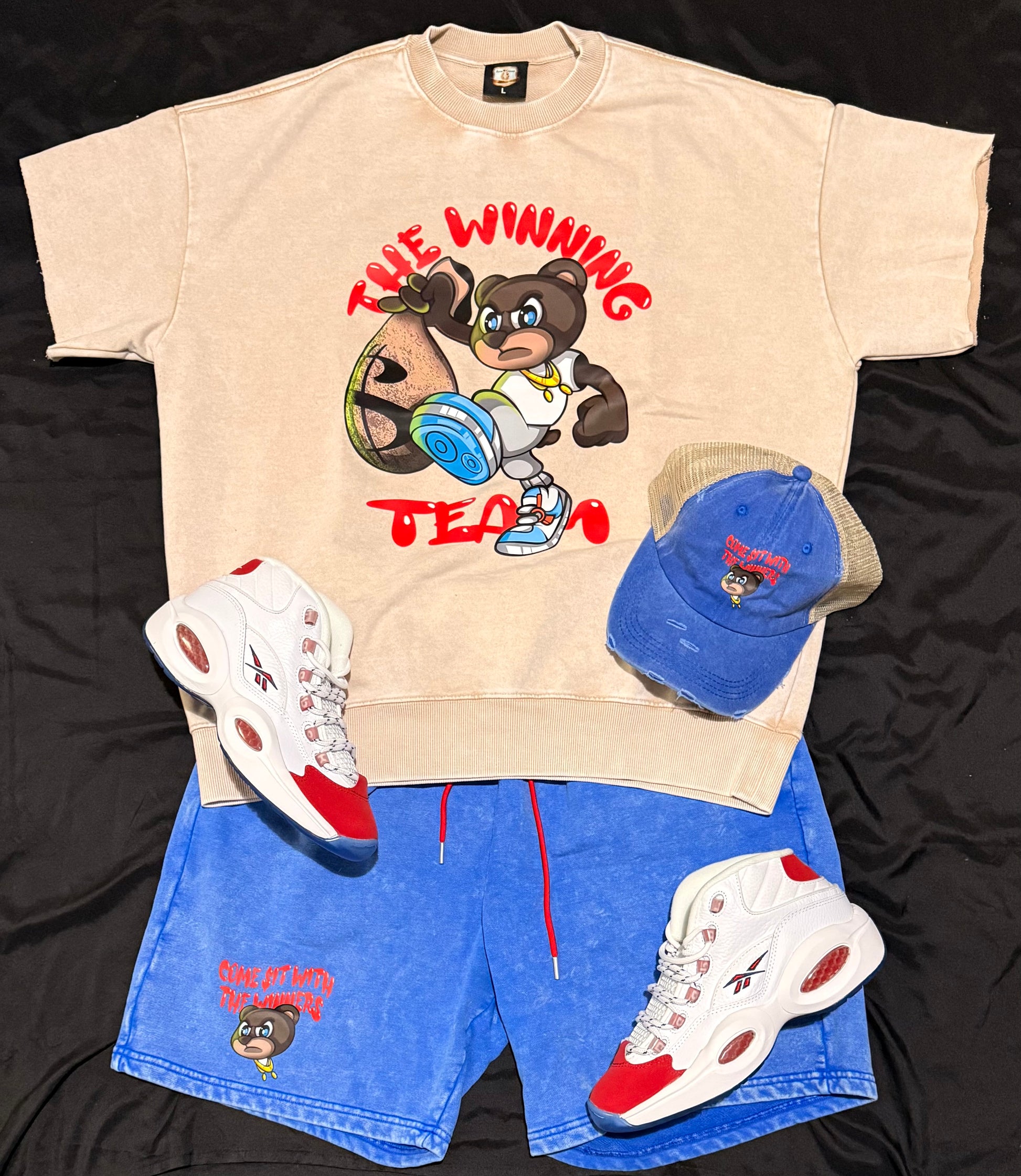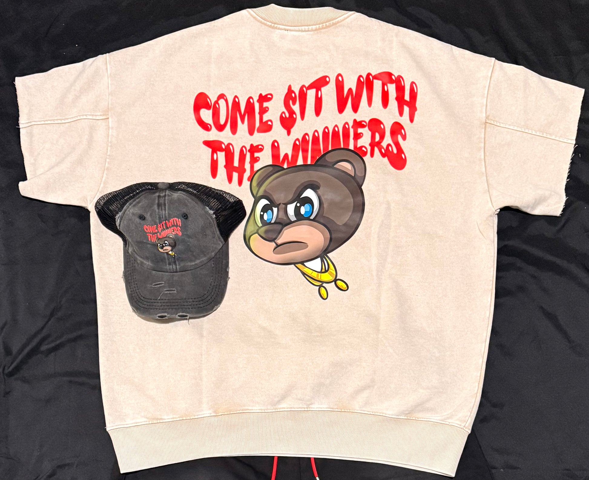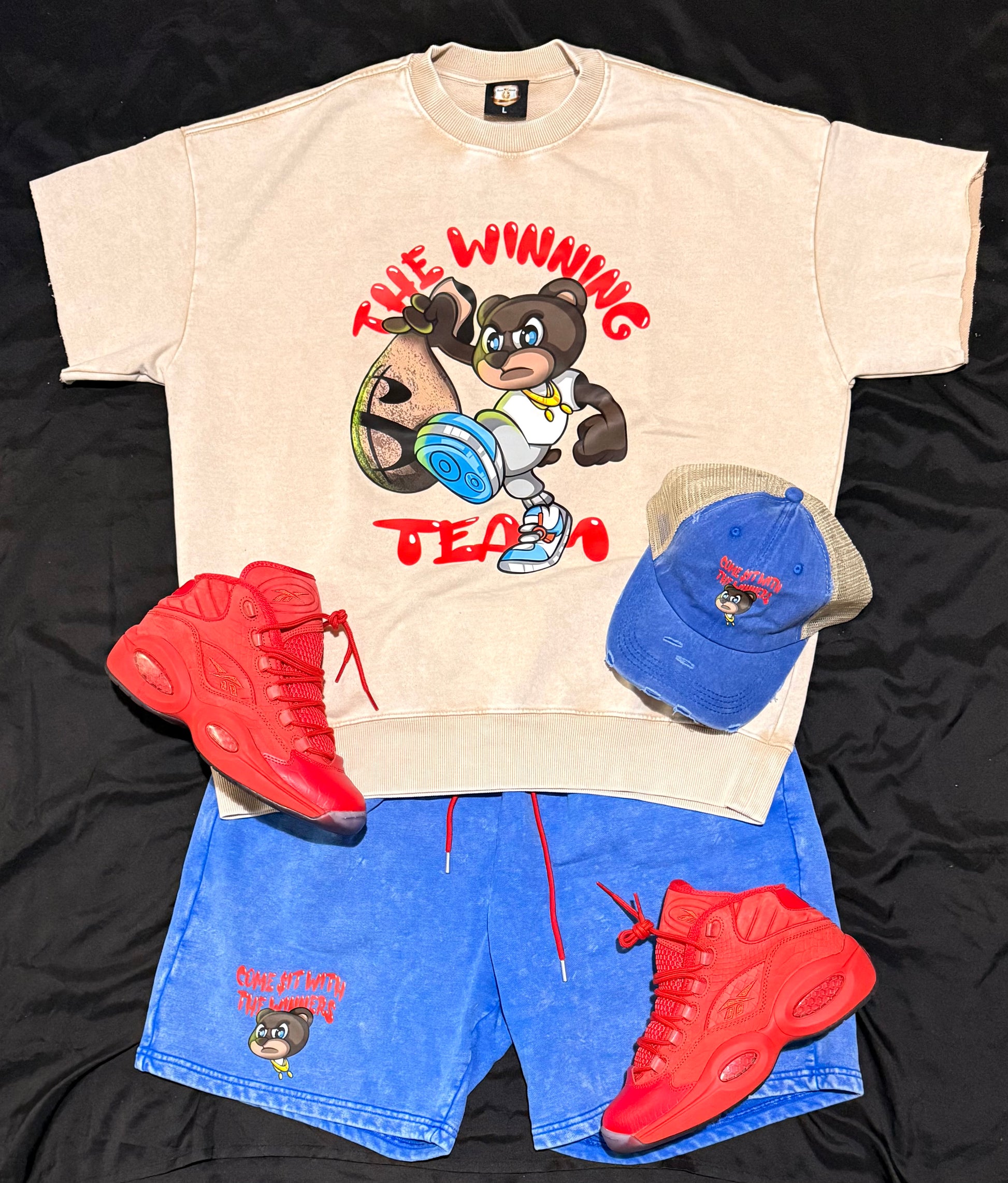 🏆THE WINNING TEAM🏆 cream/red stone wash sweatshirt